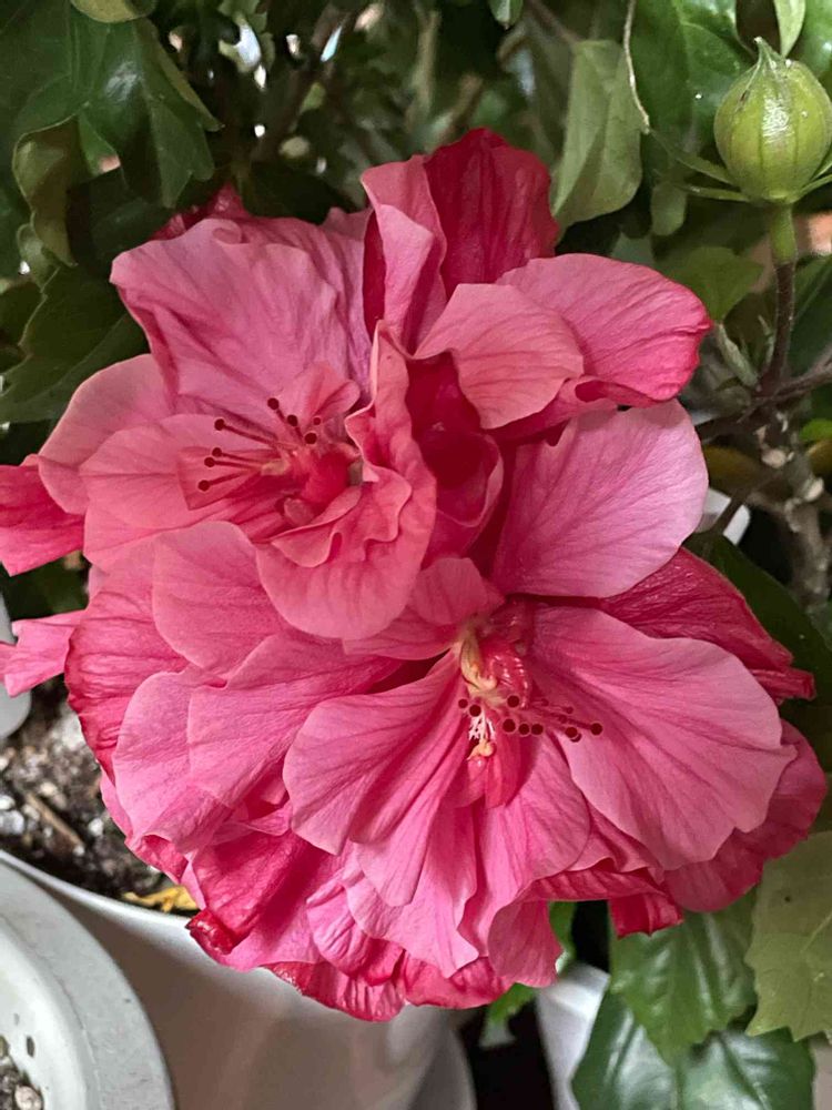 家の中で冬越し中のハイビスカス アドニスダブルピンク🌺が咲き始めていて、まだ蕾があります‼️