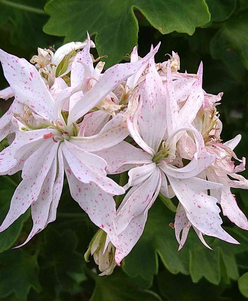 テンジクアオイの花びらの白に赤の点が可愛いです。