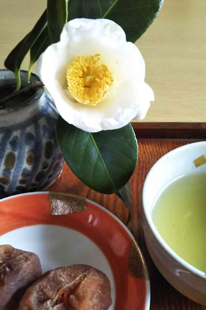 椿のお花を添えて、和風のティータイム良いなぁ(*´▽`)