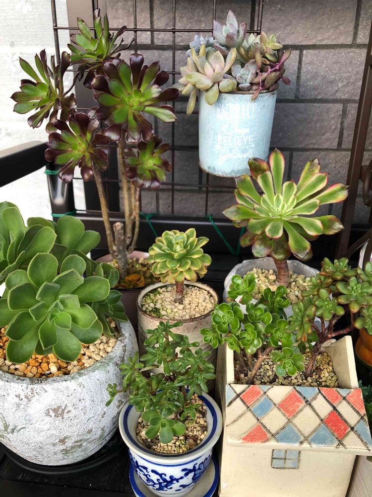 アエオニウム、沢山!私は多肉は初めて2番目に欲しいと思ったのが、黒法師でした。なかなか見つからず、3か月待ちました。でも、手に入った時は、嬉しかったですね。