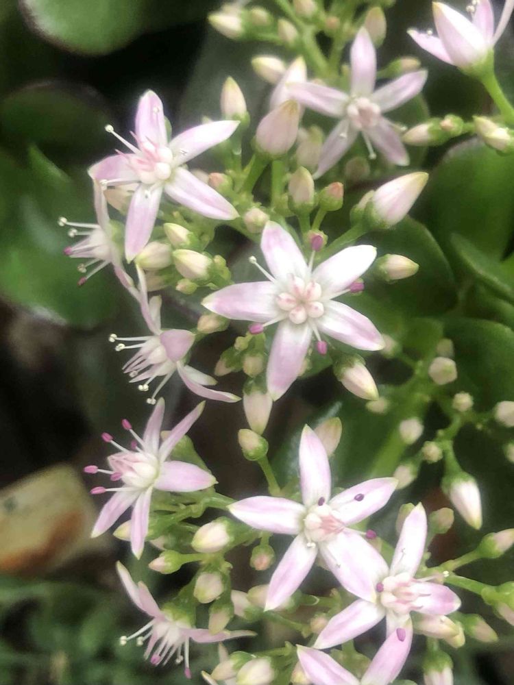 金のなる木のお花って初めて見ました。こんな星🌟みたいなカワイイお花が咲くんですね〜😳