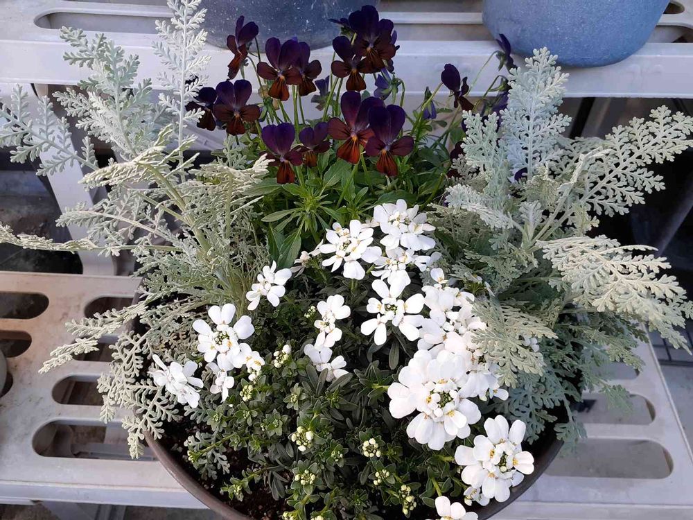 シックな寄せ植えですね❗️イベリスとシルバーレースは雪原のよう☃️