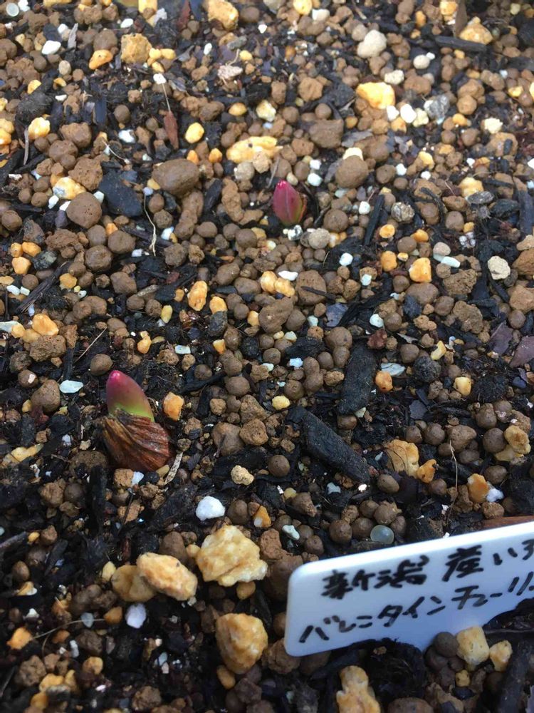 早くも芽が出てきました。隣のポットのクインオブナイトも小さな葉っぱが出てきている。いいのか?