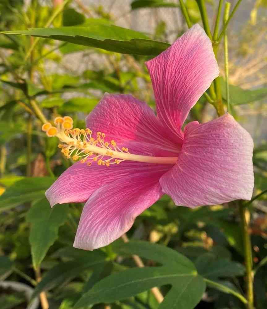 ハウスの中で、ハイビスカスピンクアイス 開花中!