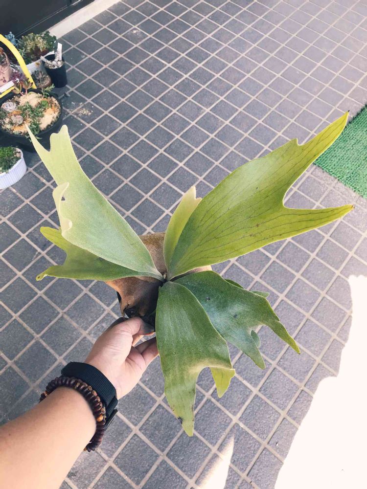 よく売ってあるコウモリランと葉っぱの形が違うから気になるんだよねー🤔