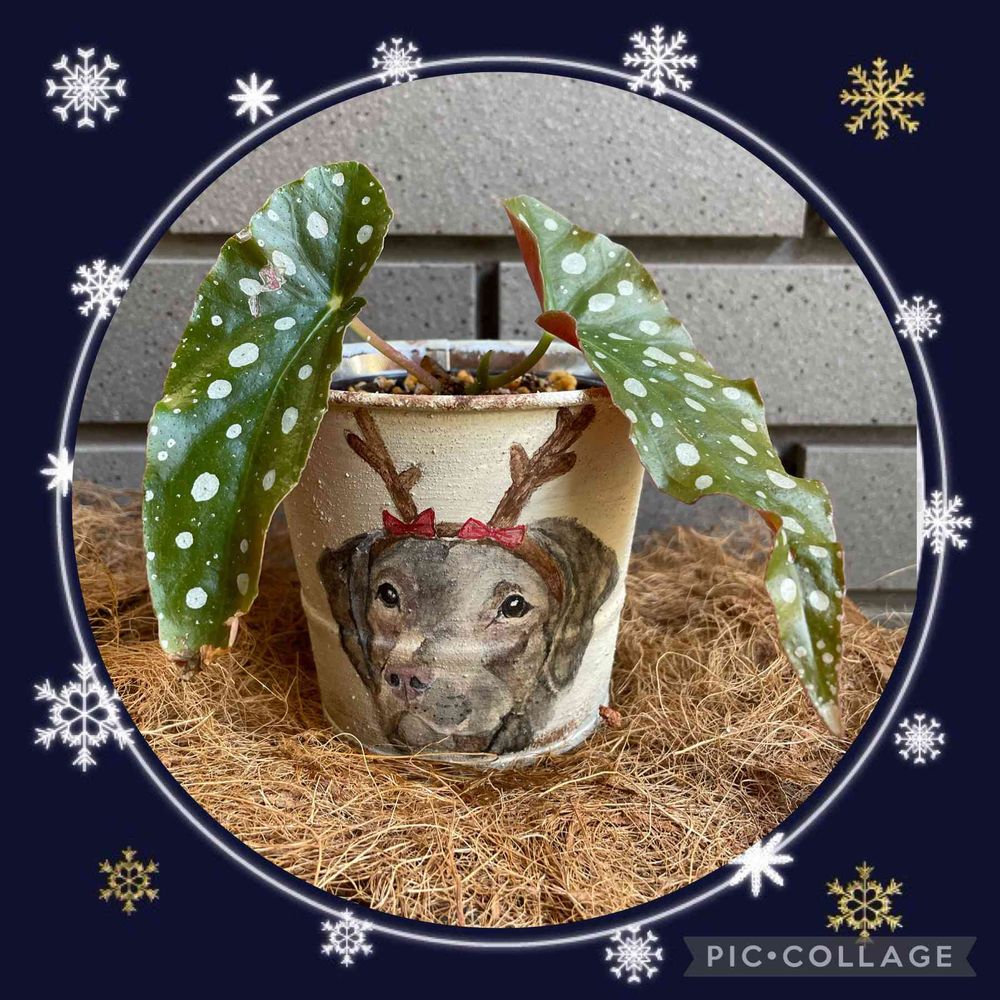 木立ベゴニアがワンチャンの顔をペイントした容器に植えられてるんですねww💖💜❤️