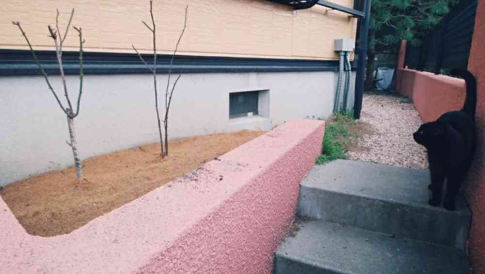 冬に薔薇のカリナを2本移動させました。植えるところが無かったのでほぼ西日しか当たらない場所になってしまい😣全く日光が当たらないよりはましかな。真夏に少し遮光する予定です。雑草よけにヤシのマット敷いてみました。