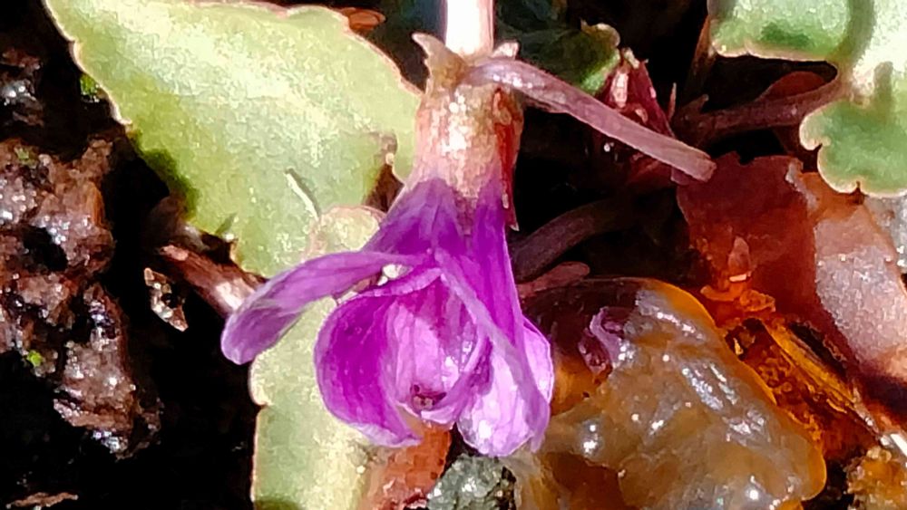 菫😳実家で見つけました。とても小さい、踏んづけるとこだった💦これから雪も降るのに何故咲いちゃったかな😂とても寒そう