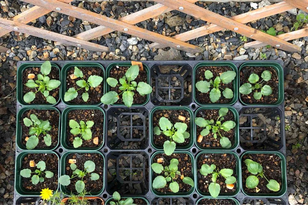 こちらは種蒔きをしたよく咲くスミレです。 遅蒔きだったので小さくてどれぐらいの大きさで寄せ植えしようかどうか悩んでいます。