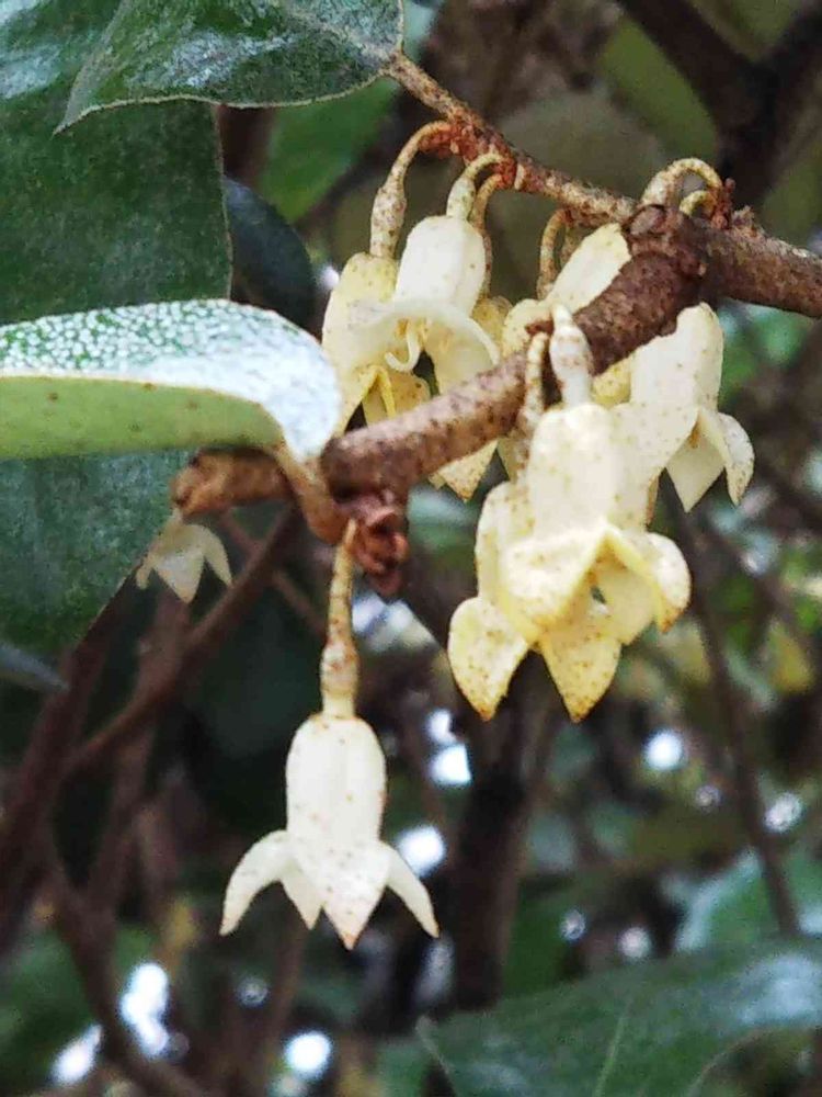 グミ“ギルトエッジ”?の💠✨釣鐘状に膨らんで葉の付け根でまばらに垂れさがってマス😌くすんだクリーム色小さな💠✨