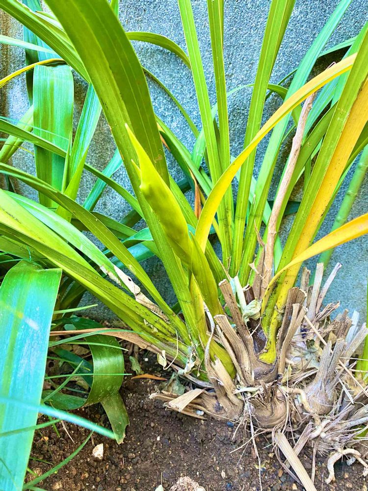 地植えチャレンジ中の名無し シンビジウム、まさか花芽が上がってました👻、しかもこんな長くも上がってきてくれてるのに、さっきまで全然気づかなかったよ😰😰😰。