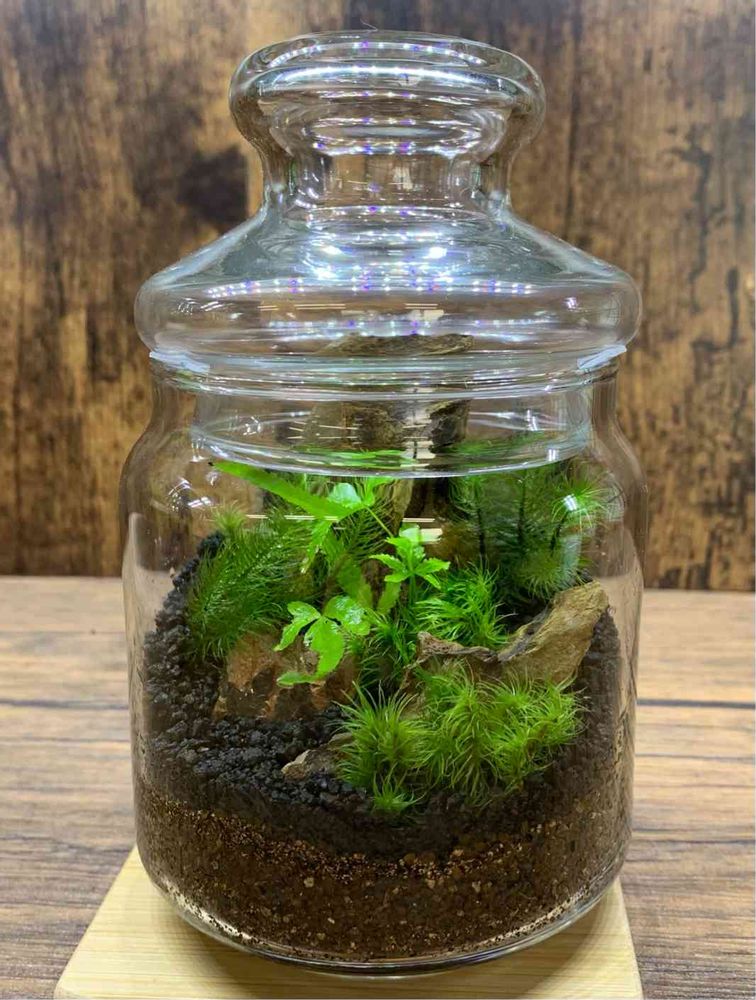 苔は瓶の中で徒長したりするけどシダの方が元気で可愛いくなってきちゃって💕