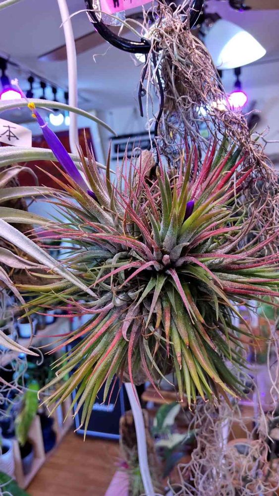 ティランジア·イオナンタイオナンタの長いお付き合いの個体が突然紅葉して開花が始まりました~不思議な現象(笑