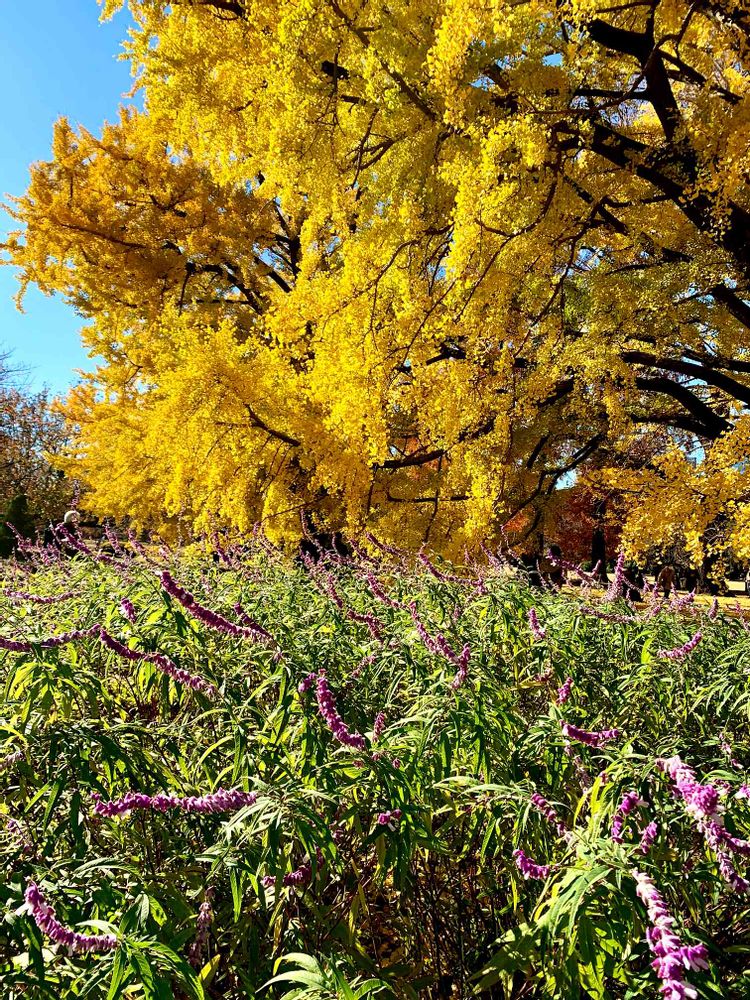 アメジストセージとイチョウのコラボ💜💛