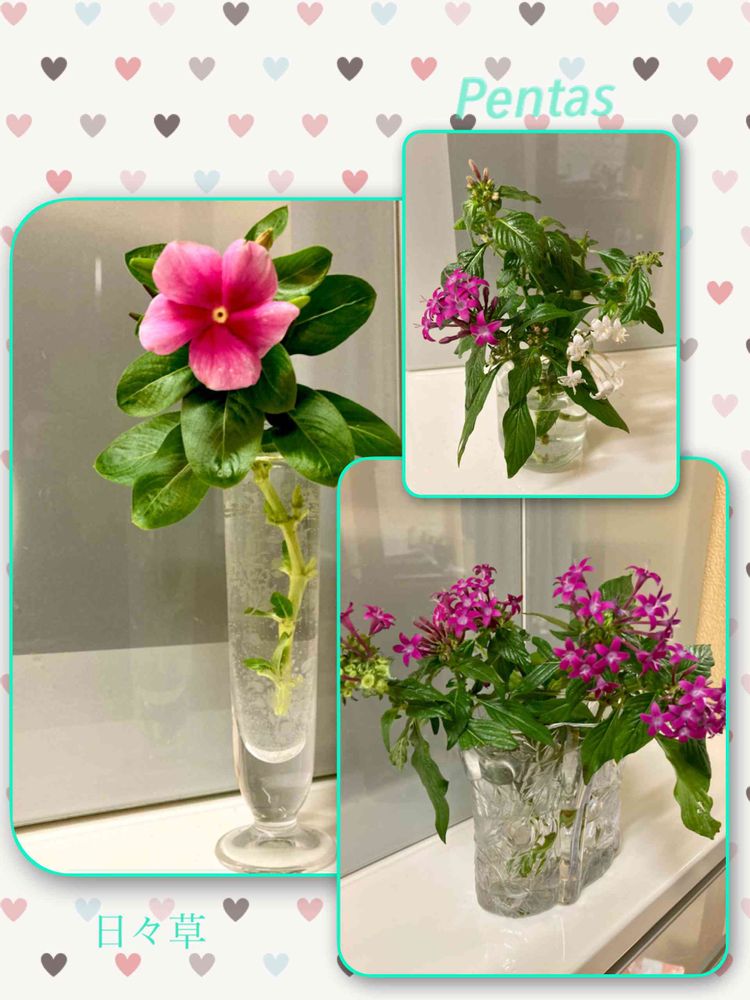 昨夜、玄関内に入れた日々草とペンタスが、折れてしまいました。
