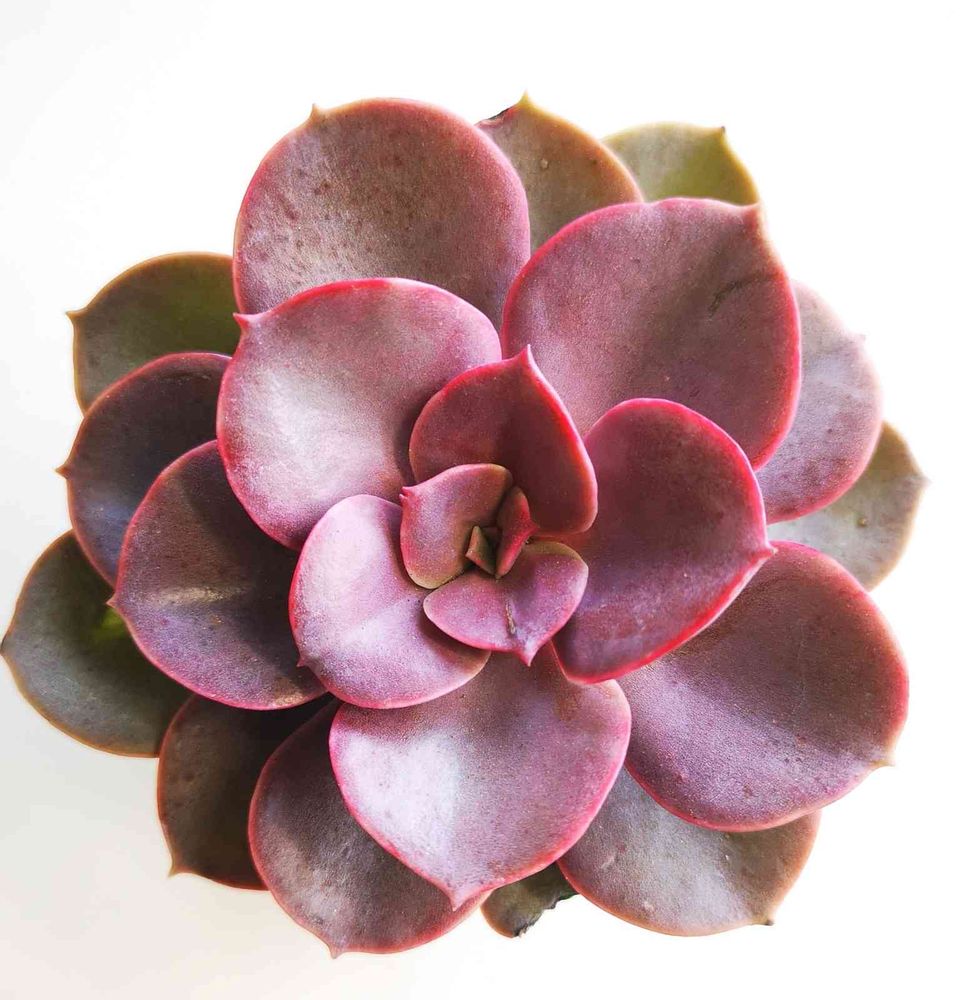 「Echeveria 'Red Sky' is an improvement on the classic 'Perle von Nurnberg' with bold pink rosettes.」