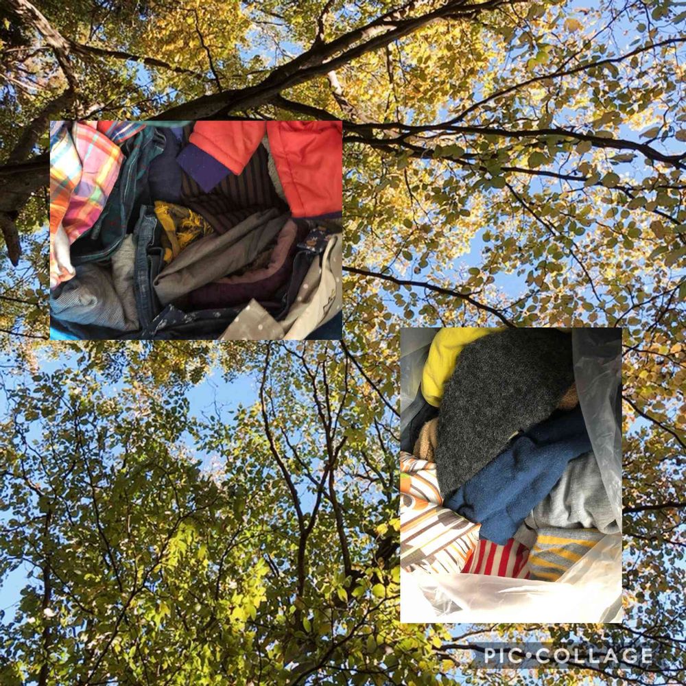 着ないけど捨てられない洗濯済みの洋服をゴミ袋にまとめて2袋、家に置いていたので、チャンス!
