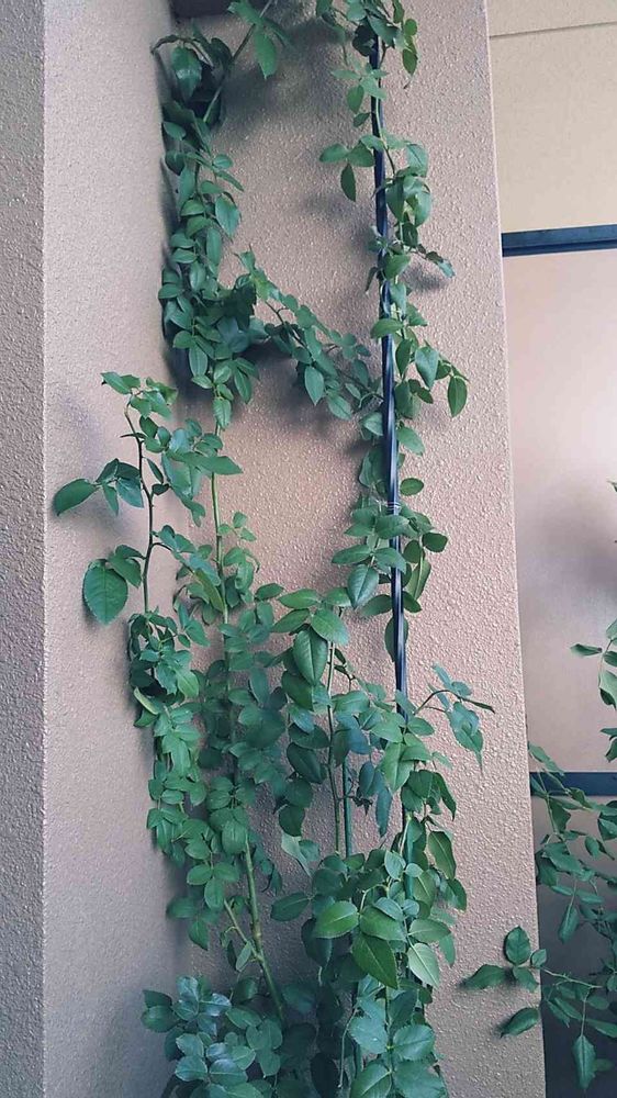 フェンス沿いにするか、窓上を這わせるか…誘引毎日考えてます🤔