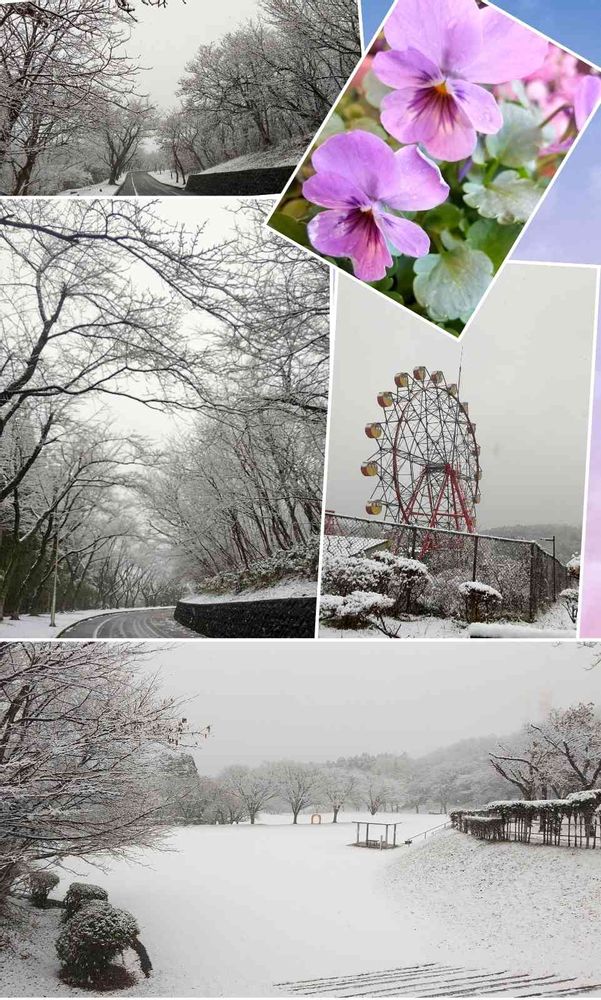ビオラ、パンジーさんたちだけです、どんなに雪かぶっても元気で咲いてくれるの✌🌼🌼🌼🌼🌼