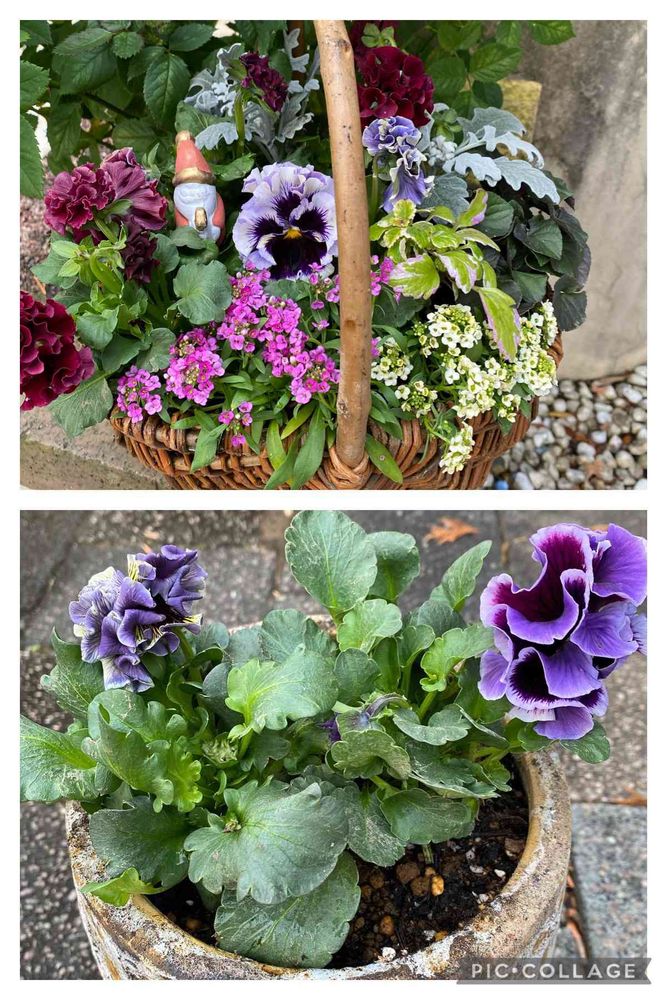 ドラキュラパンジーとローブドゥアントワネットソワレの寄せ植え(*^^*)ドラキュラは3株ありました2株だけドラキュラを植えてみました。モリモリになるかしら?ローブドゥアントワネットソワレとドラキュラを寄せ植え、籠一杯にモリモリ(^-^)