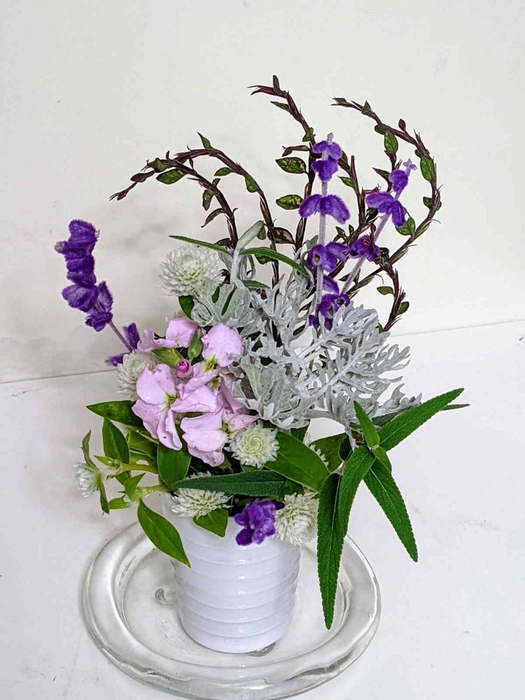 アメジストセージ家にもありますが この様な曲線を作って活けるの素敵ですね🥰思いつきませんでした。