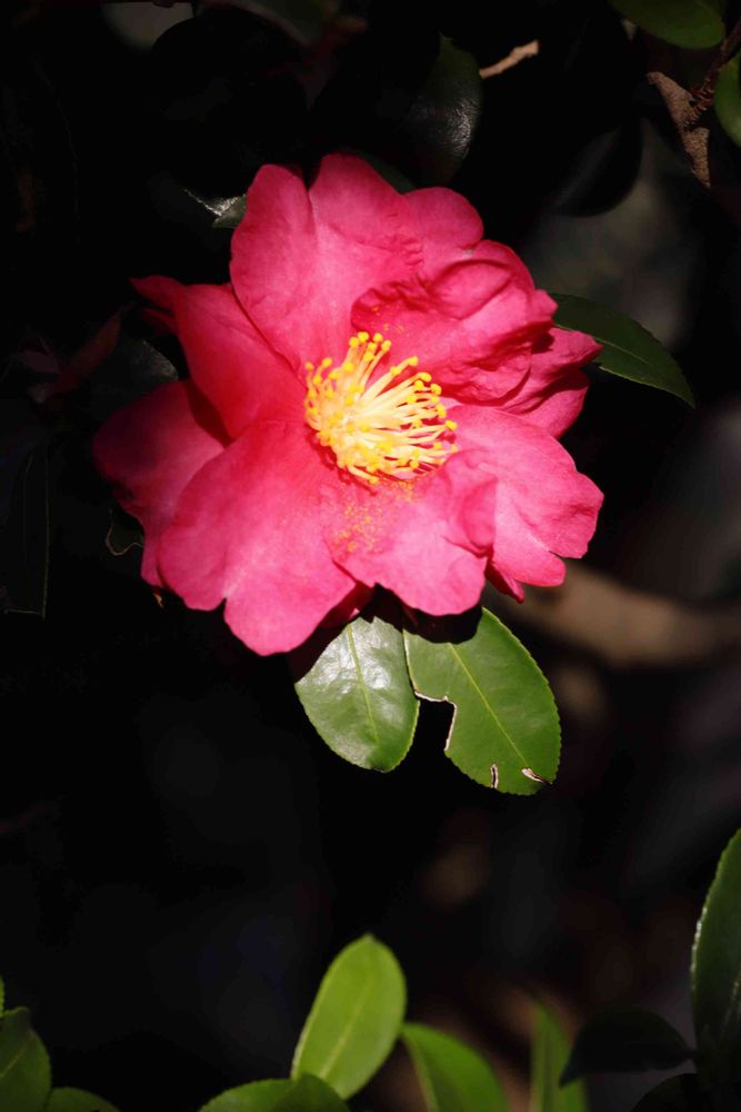 スポットライトが当たってる感じのサザンカの花🏵🌼🌸です。