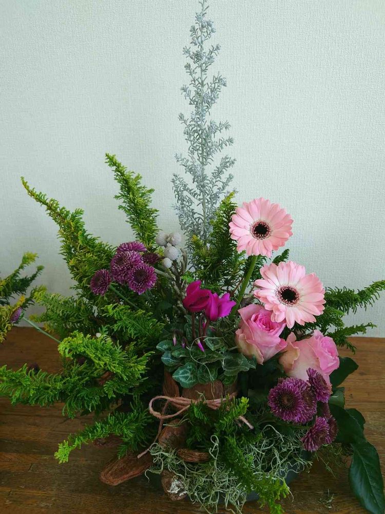 昨日のレッスンは、シクラメンは、ポットのままバーグで、カバーして長持ちするので、お得感満載です😆