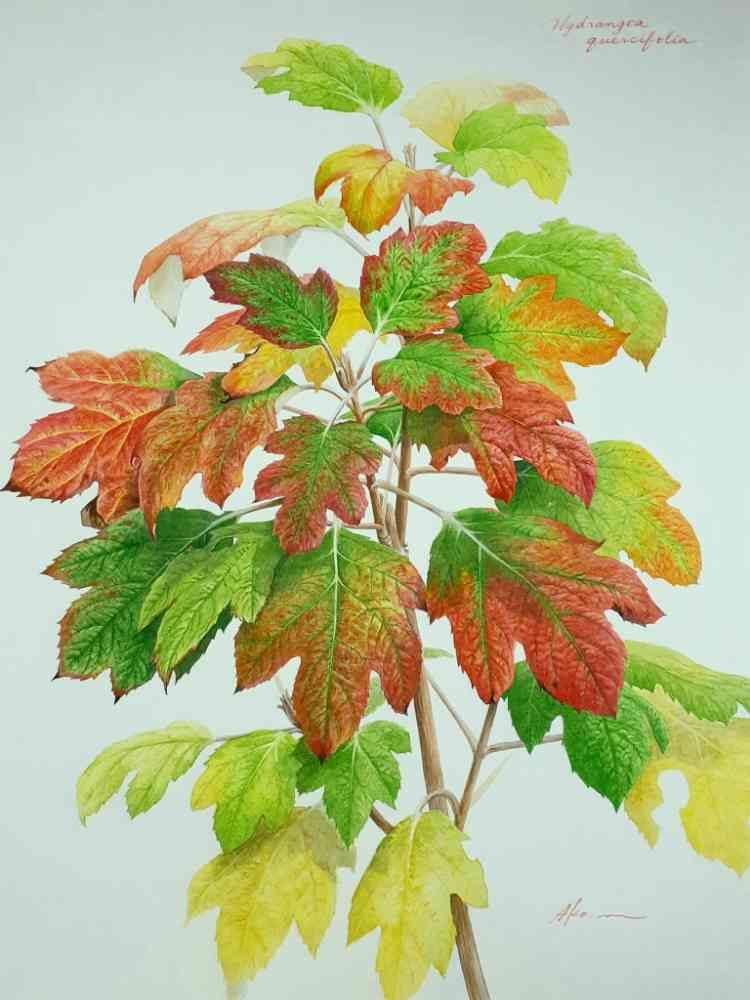 カシワバアジサイ,水彩画,紅葉(こうよう)の投稿画像