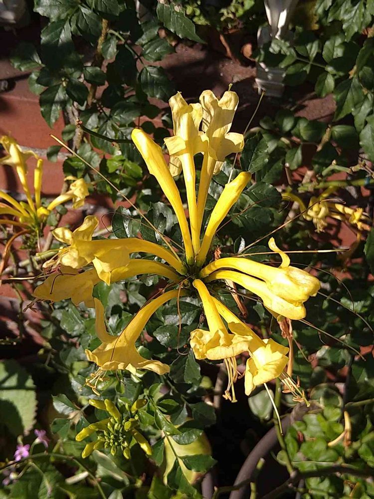 喫茶店の入り口の花壇に黄色い花が咲いていました。