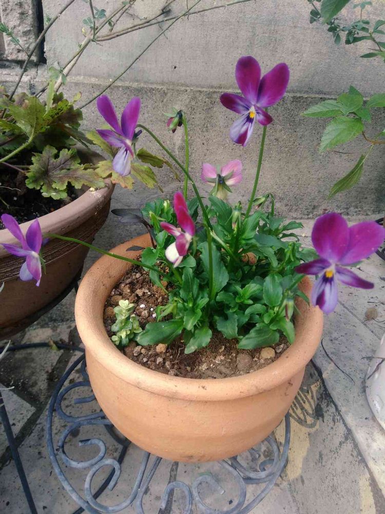 狭いスペースでお花づくりを楽しんでいます ネコとビオラとゼラニウムが私の活力剤です