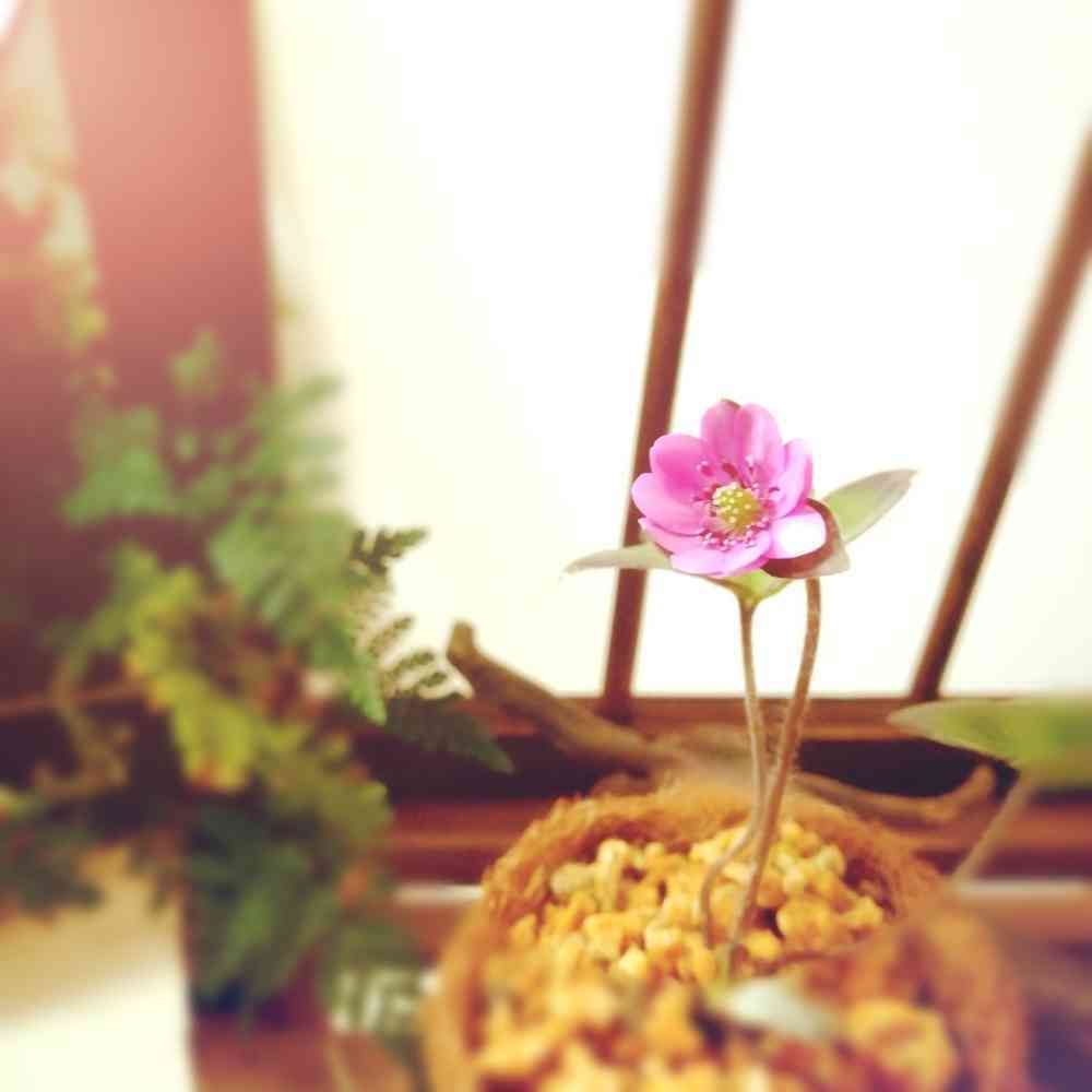 太陽を見上げる雪割草ちゃん💕心地よいひかりだね🌼🌼