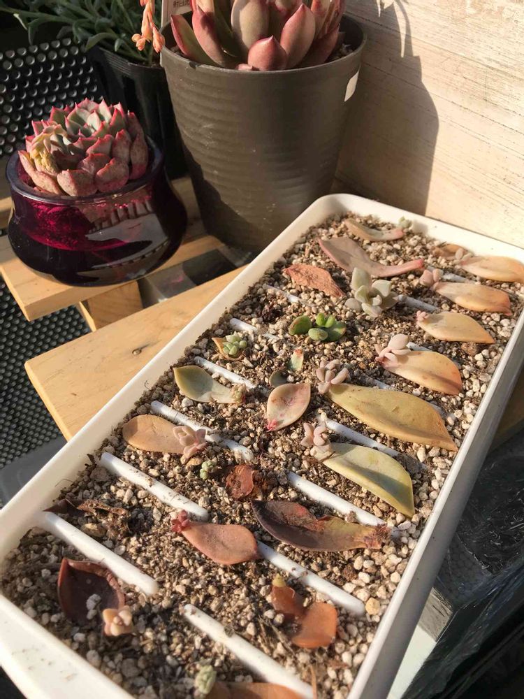 葉挿ししてる多肉ちゃんたちを毎朝覗いて仕事に出かけます。なんだか頑張ろう💪🏻😁って気持ちになります❗️