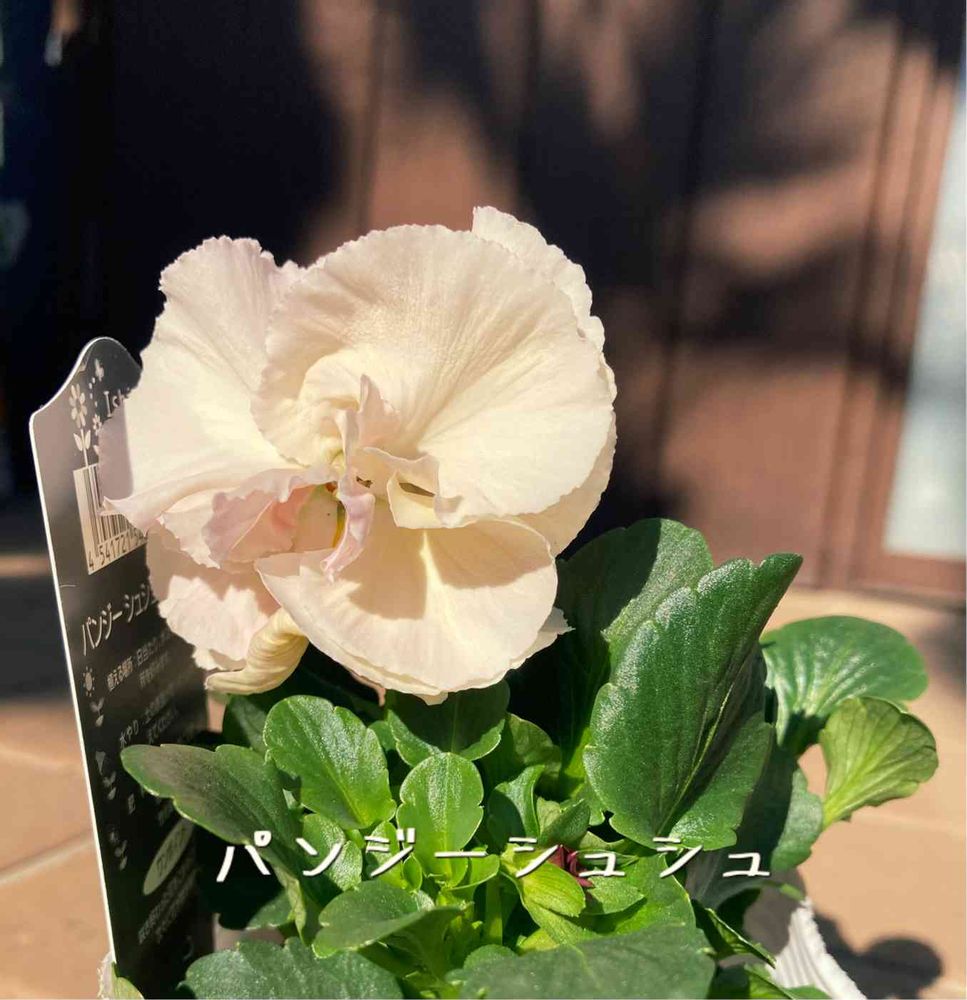 本当にシュシュみたいなパンジーです🤍 アイボリーに淡いピンクが優しくて癒されます(´∀`艸)♡