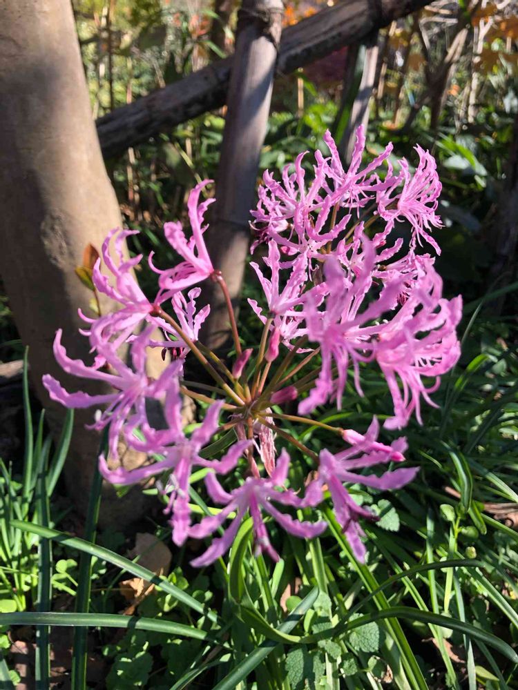 茶系の草花が多いこの季節、透き通る様なピンクのお花が輝いて見えました✨