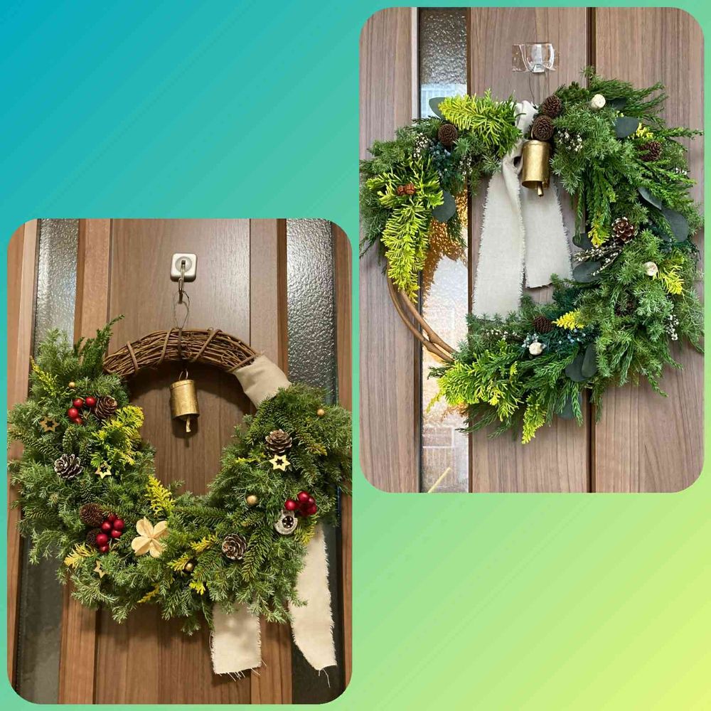友達手作りのクリスマスリース2種が、LINE で送られてきました🥰💕