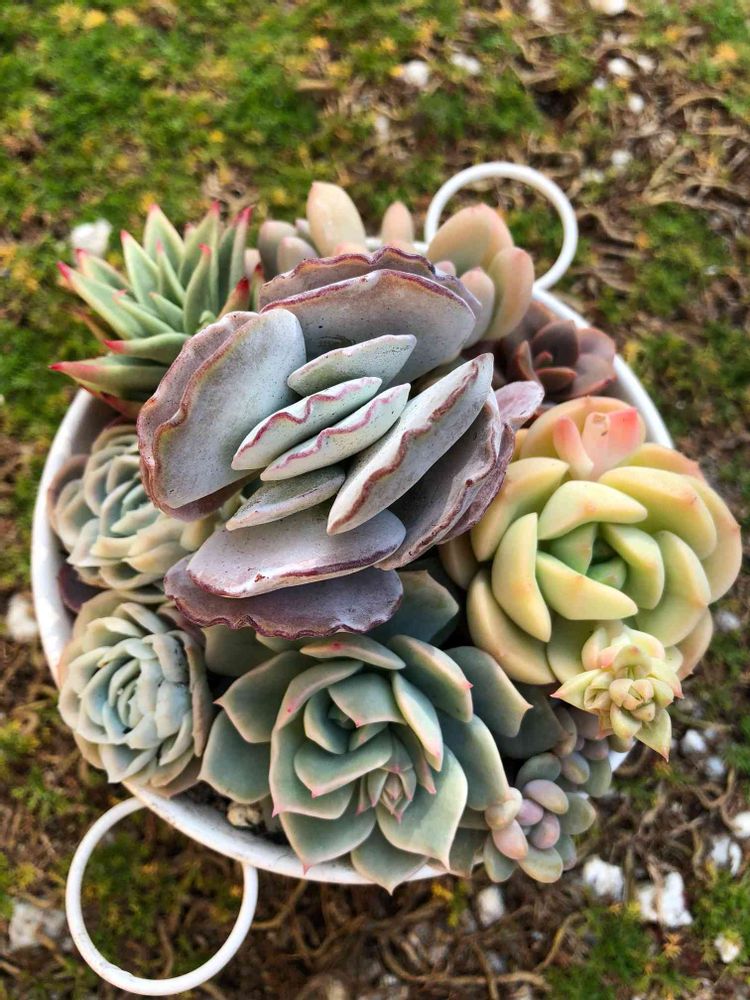 白い鉢なので、淡い優しい色の子を集めて寄せ植えしてみました💕