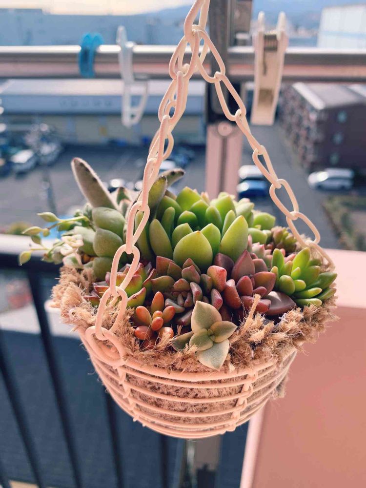 ありがとうございます。セリアの吊りカゴに植えて見ました…なかなか上手くいかないの💧