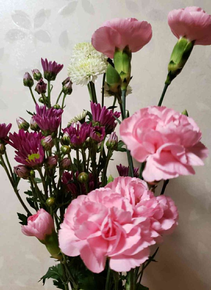 生協の注文で、届いたスプレーカーネーションとスプレー菊ですよ~😃✌️日に日に大きく開いてくれてます。500円でした。ラッキー😃💕