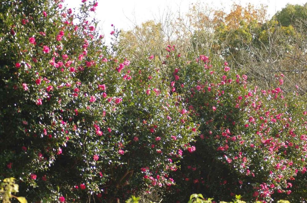 椿でしょうか…似た花も在りますね。山茶花かも😅