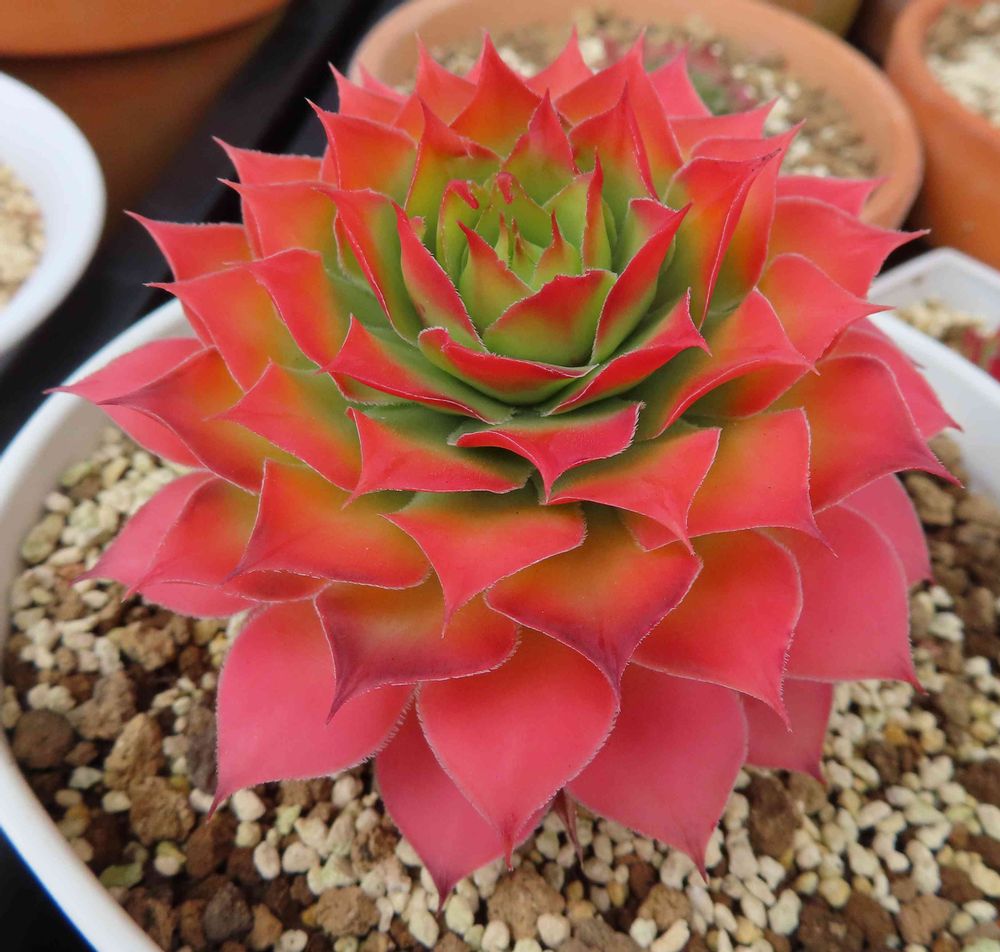 すっかり投稿の常連となったセンペルビウムのゴールドナゲット。赤が色濃くなって一際目立ってきた。赤の鮮やかさでは我が家の多肉の中でも1,2を争う。