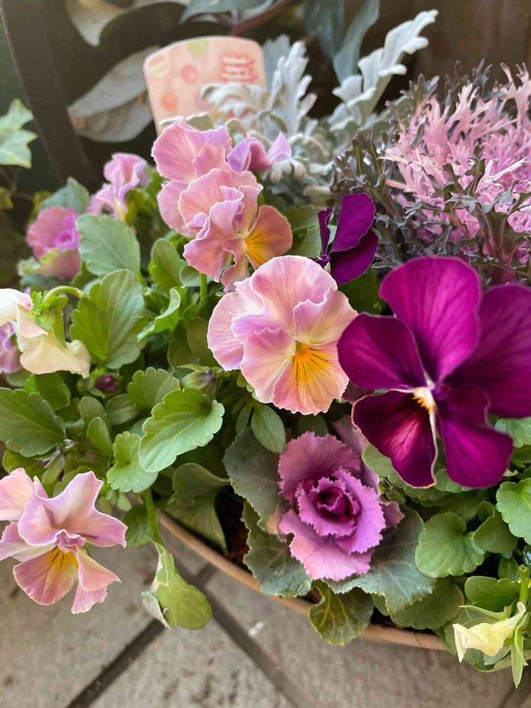 パンジー シエルブリエの妹分?!のフリルビオラ 華あられの寄せ植えです😃