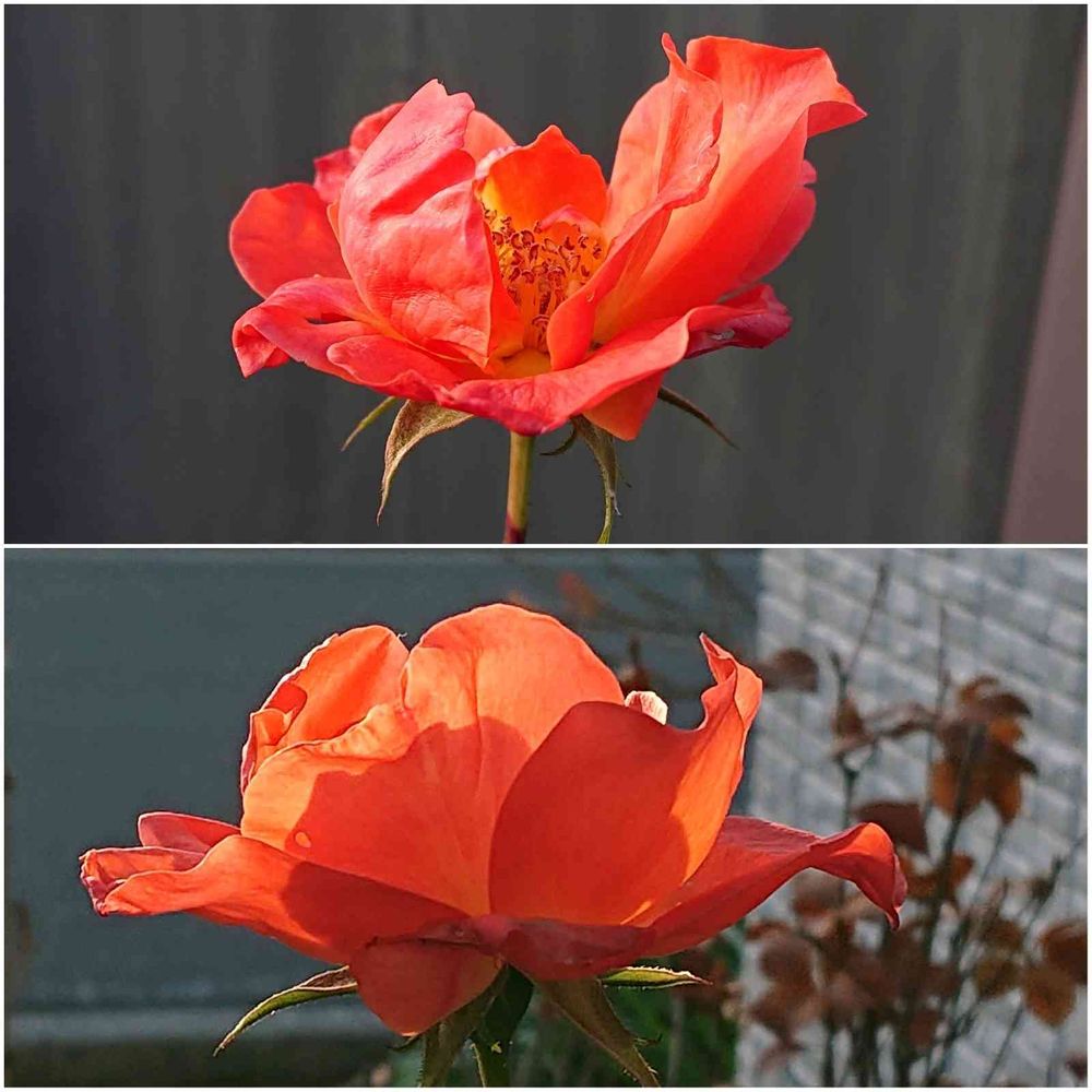プリンセス・ミチコ❣️。今シーズンの仕舞いの一輪になりました。日光を受けて耀きます❗。