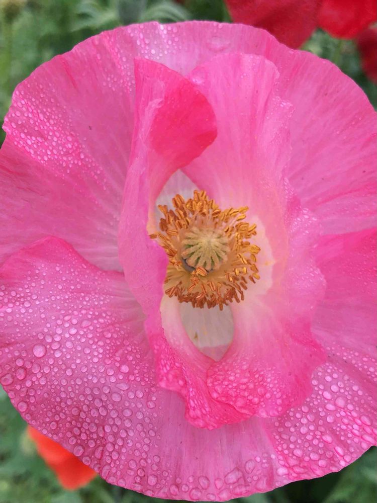 赤いポピーが群生してる所のピンク⁉️