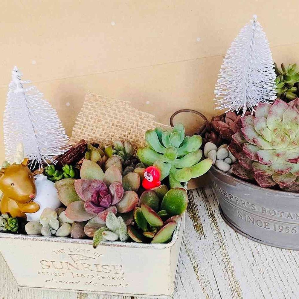 わぁ、凄く可愛いクリスマス風の寄植えですね🎄✨
