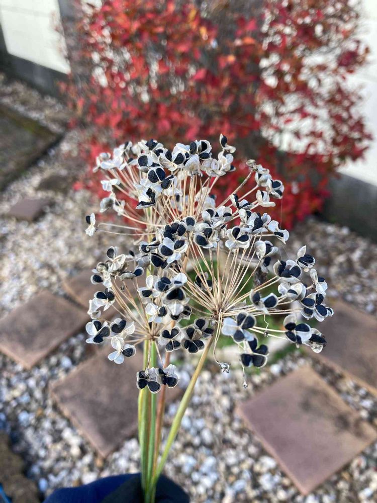 ニラの種です。😊薔薇の剪定してたら、薔薇の下にあり、なんか可愛かったので、アップしました。