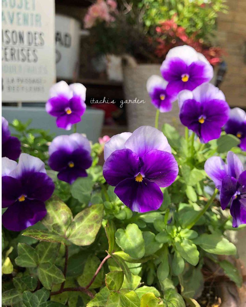 10月に定植したビオラビビビーコン、ヘデラ、チューリップ(球根)の寄せ植え💜