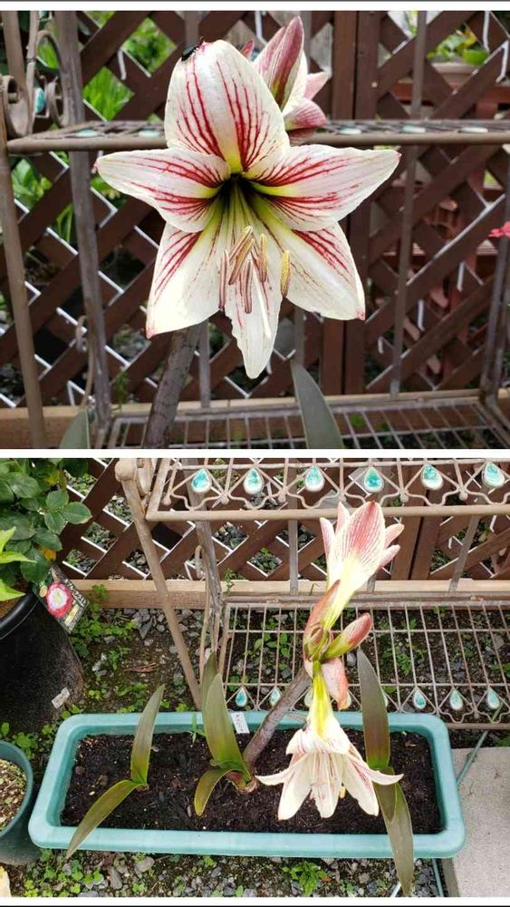 今年5月のアマリリス😊母が育てていたのを初めて株分けと言うものをしたので咲くか心配してましたが、何とか咲いてくれました。今は葉っぱが沢山出て来たので来年の春は沢山咲いてくれる事を願ってます😊