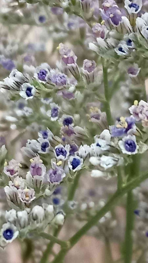 空の花瓶に挿されたブルーファンタジー ゴマ粒大の花はフジバカマの蕊の出る前のようです。