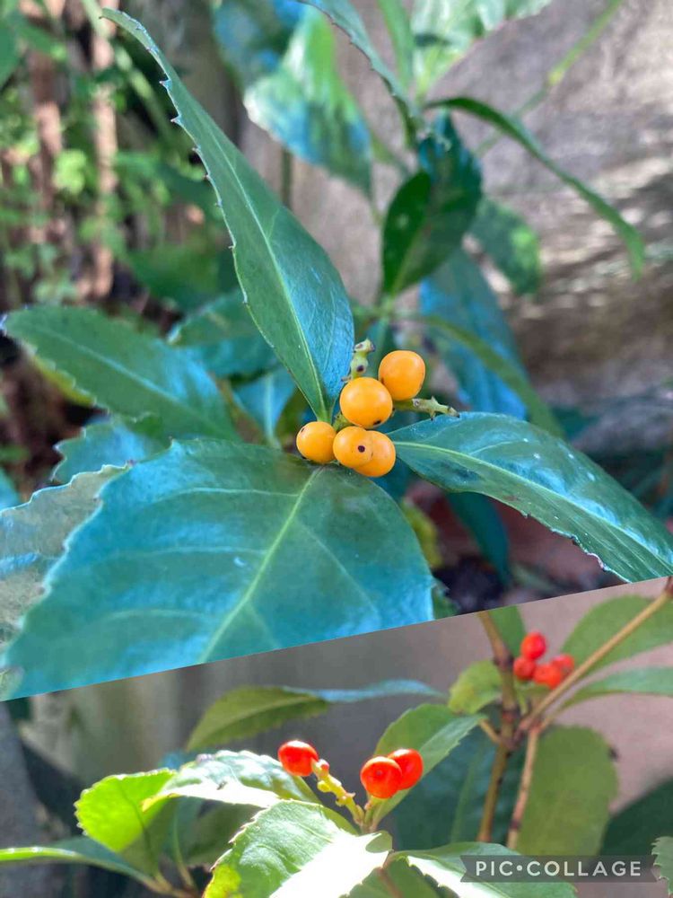 マンリョウの実は葉の下に、センリョウの実は葉の上に、が最初に覚えた見分け方🌱