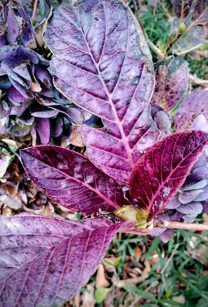 鬼ヤドカリさん。🤗 珍しい色🟣してますね。初めて見ました。我が家の紫陽花 地植えも、鉢植えのも、枯れ葉の色です。アルカリ性が、強いのか?もしかして、酔っ払ってる? 😆💕